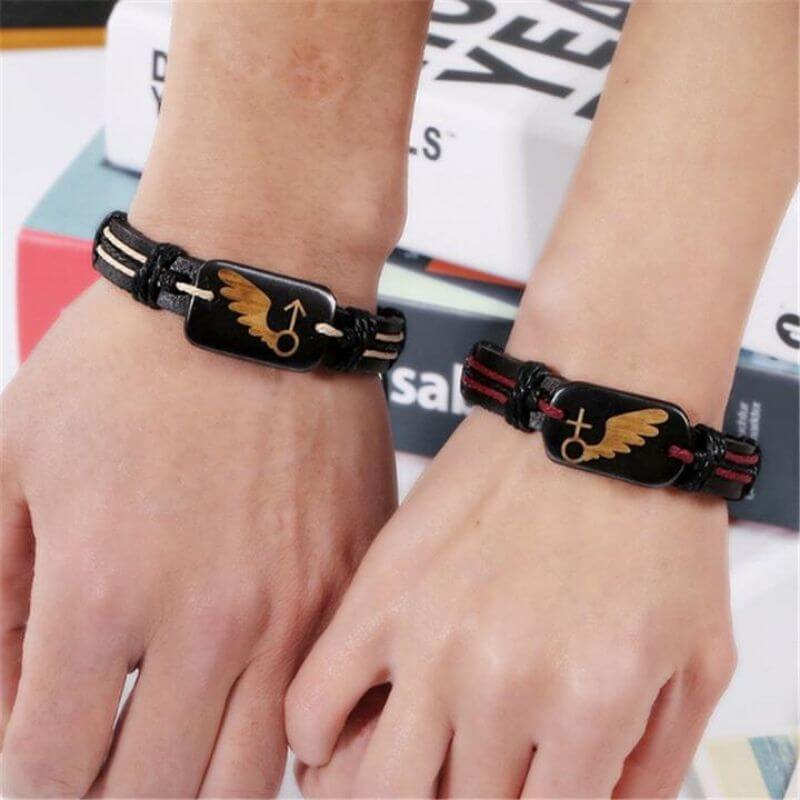Chaque Bracelet est Complémentaire à l'autre. Mettez les côte à côte pour voir deux ailes d'ange se former. Votre ange gardien veillera sur votre Couple