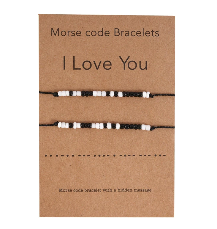 La phrase " I Love You" (je t'aime) est inscrite sur ces Bracelets en code Morse pour être en Couple et complice en toute discrétion