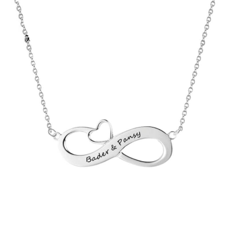 • Affichez fièrement votre Prénom et celui de votre partenaire avec ce Collier en Argent Massif. Le symbole de l'Infini représente votre amour éternel.