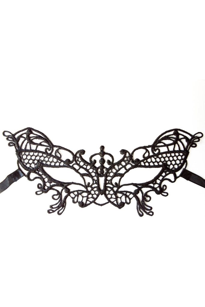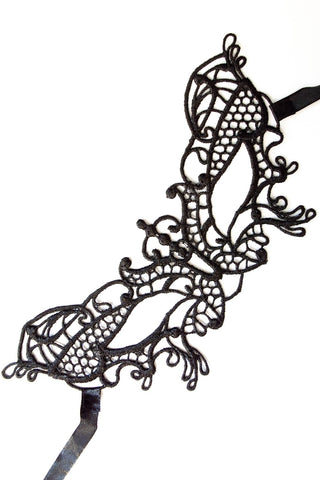 Loup noir en broderie souple avec rubans satinés de chez Dreamy Fetish salon