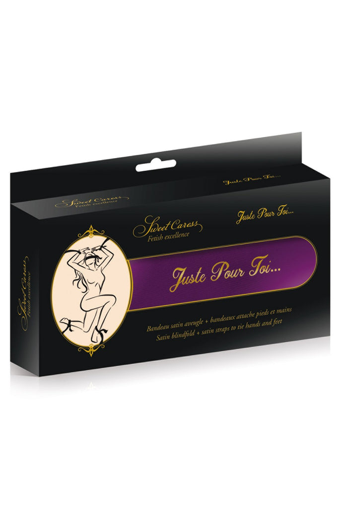 Fétish : 5 bandeaux satinés violets pour chevilles, poignets et pour le bandage des yeux design