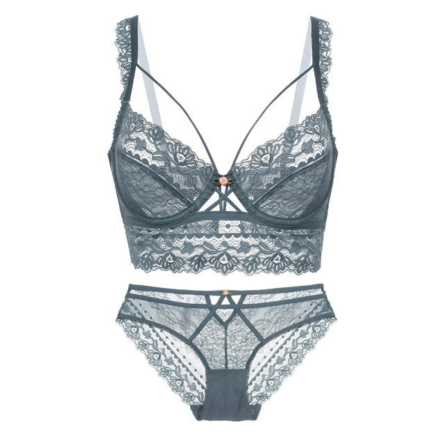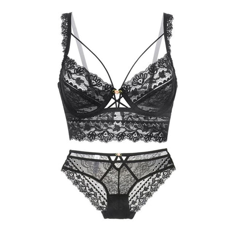 • Cet ensemble lingerie dentelle luxueuse et sexy est fait pour vous. Ouvrage ultra délicat de dentelles et de broderies, dans un esprit joliment sophistiqué. Jeu fascinant de liens, de dentelles et de découpes.