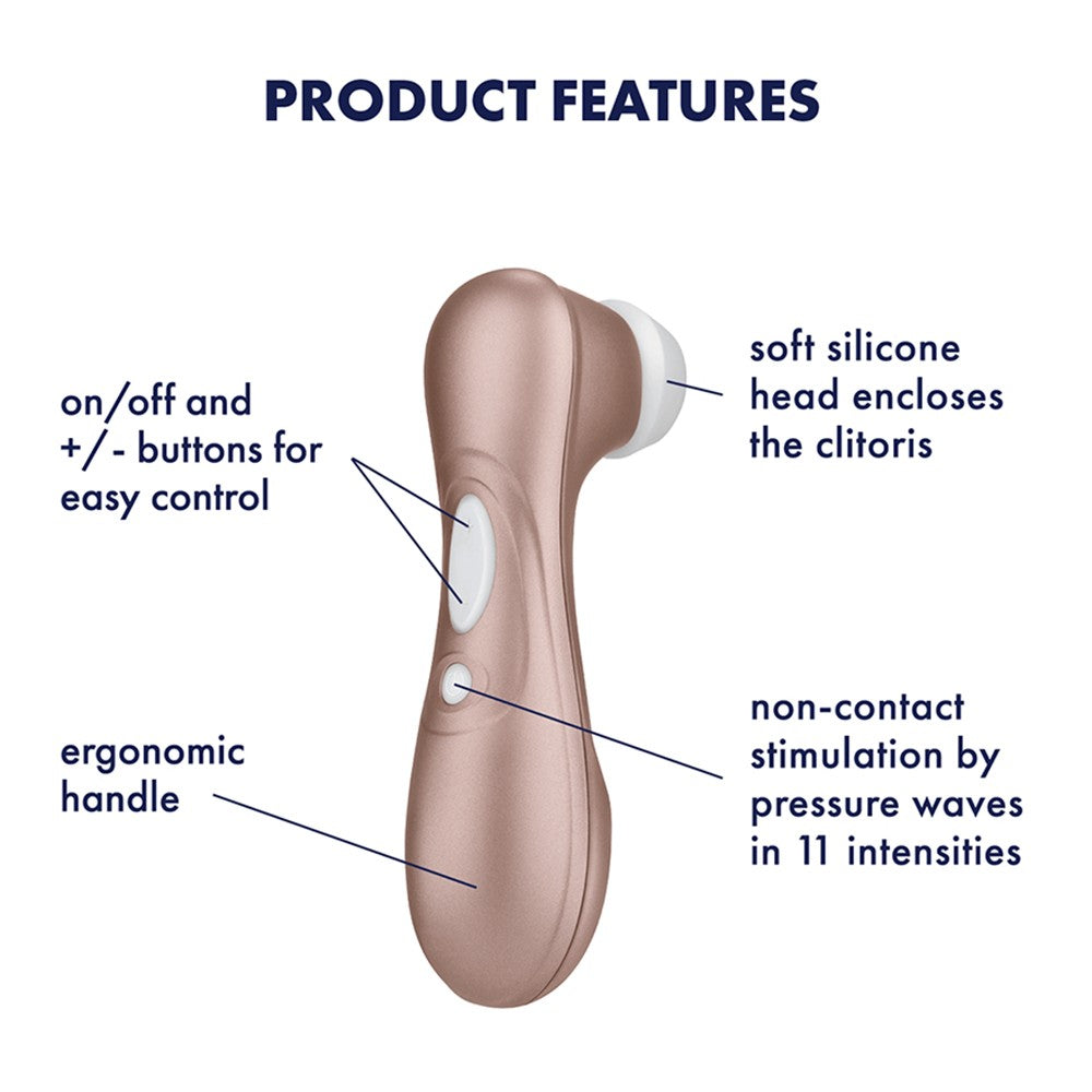 Le stimulateur Pro 2 Satisfayer est muni de la technologie innovante à air pulsé (Air Pulse), il stimule le clitoris en utilisant des ondes de pression intenses sans contact direct. Avec ses 11 intensités d'ondes de pression, ce stimulateur clitoridien vous fera atteindre un orgasme intense et rapide. Silicone biocompatible - Rechargeable USB contact magnétique - Water proof