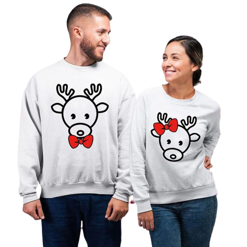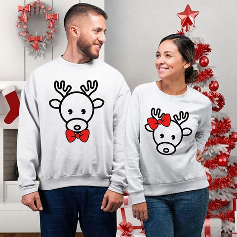 Les 2 Pulls Couple Cerfs de Noël