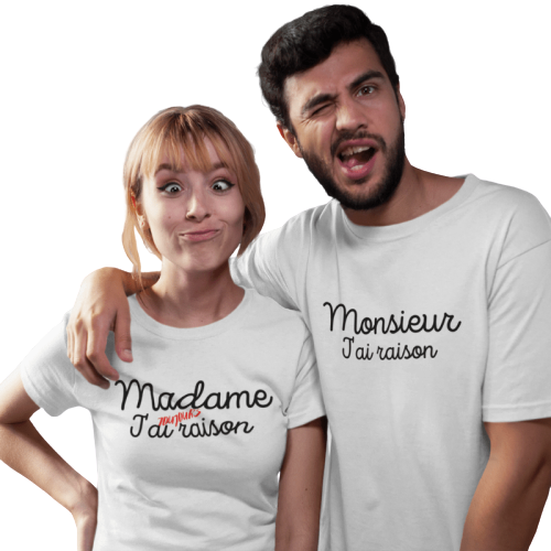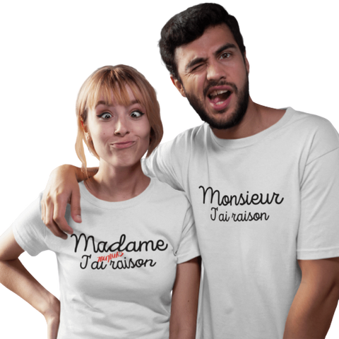 • Vous êtes Madame et vous avez toujours raison ? Ce tee-shirt de couple est parfait pour vous ! Nargué votre copain, mari, fiancé lors de vos balades